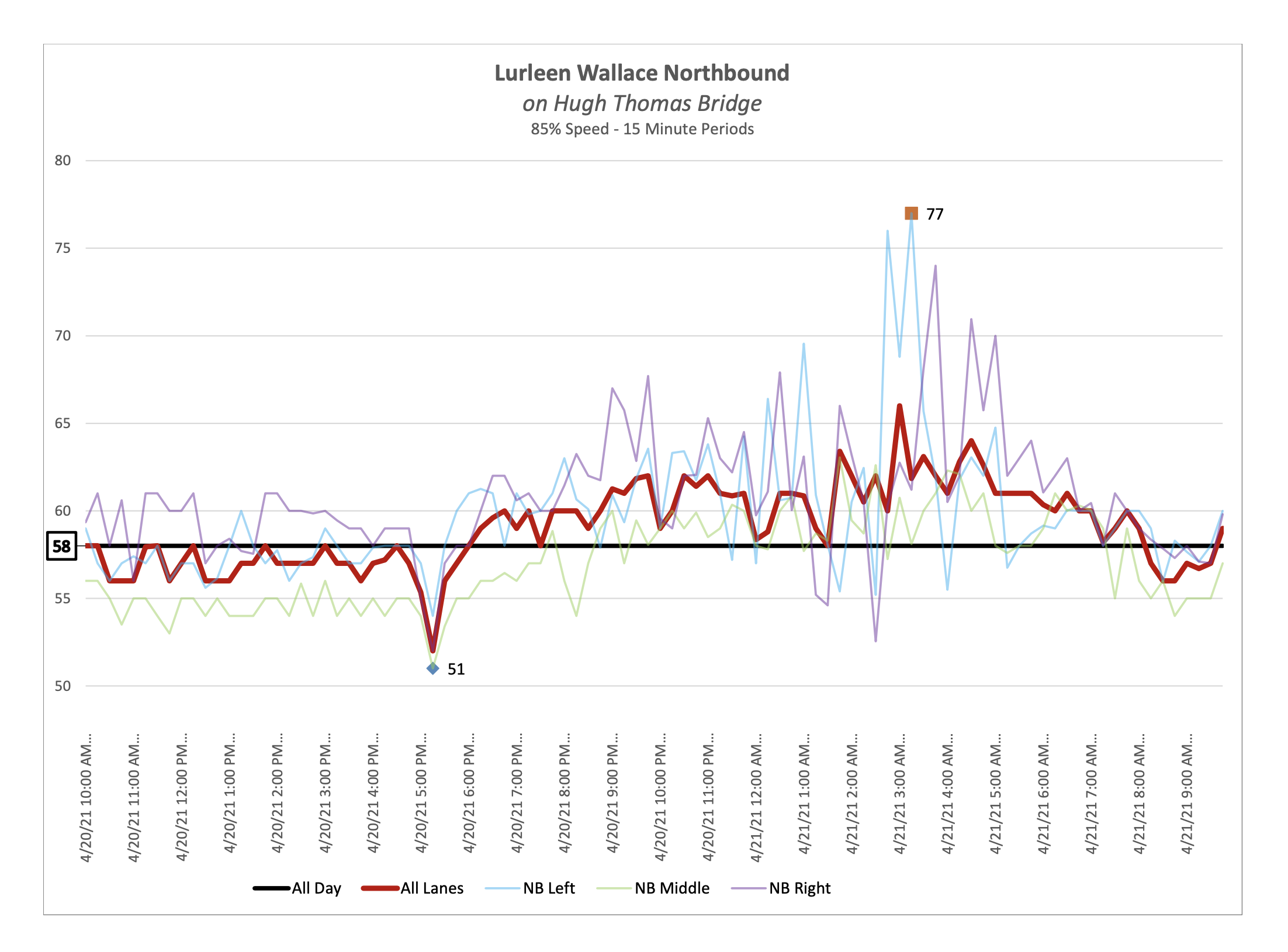 Based on the 2021 ALDOT speed study, a recommendation was made to the city to let the bridge speed limit remain at 55 MPH, instead of lowering it to the speed limit of 45 MPH that existed on either side of the bridge.
