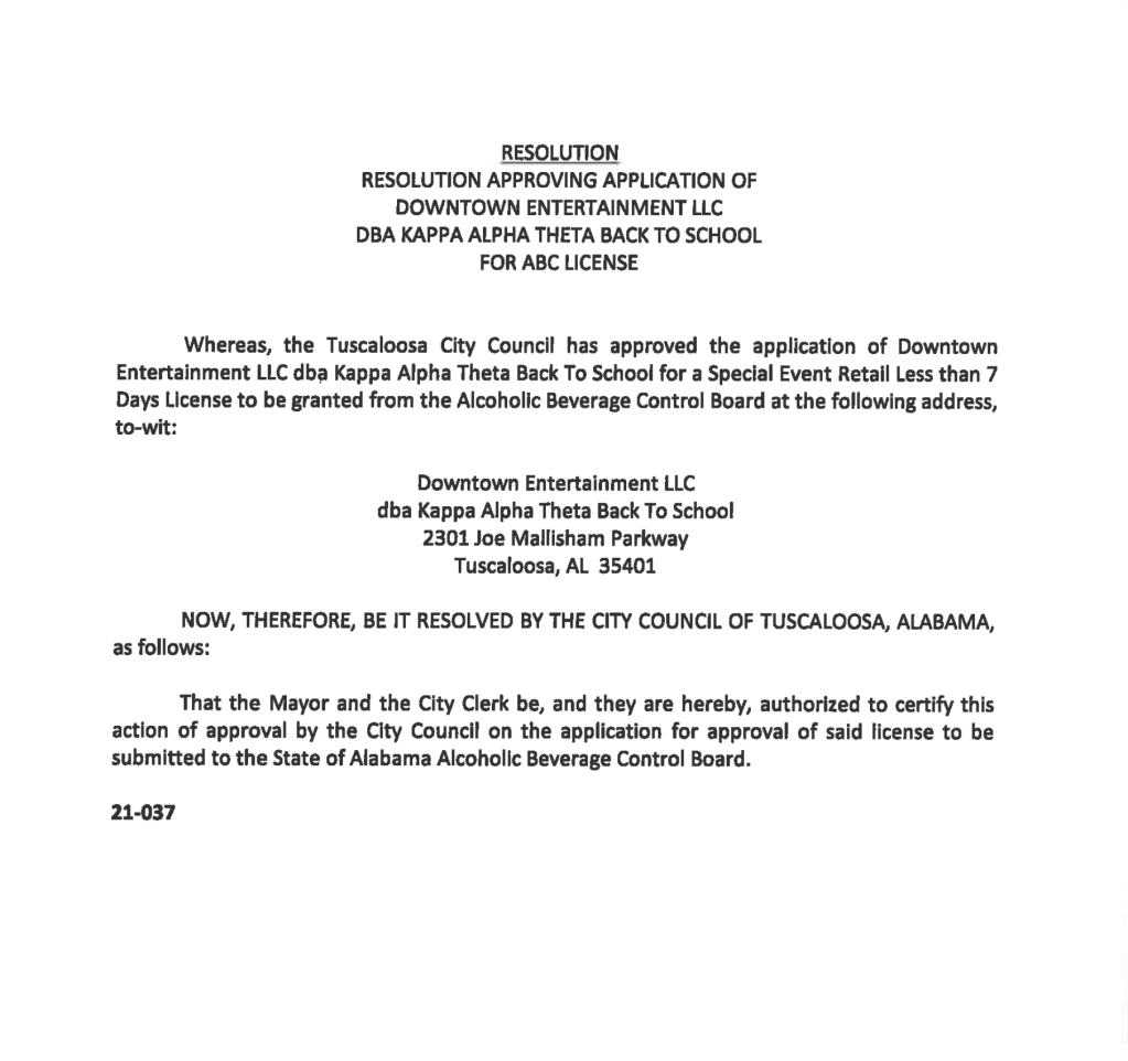 An application for another such party came before the Council on August 24, 2021. The Kappa Alpha Theta sorority’s “Back to School Party” would take place at the same pastoral location as had been planned for the Farm Party. Once again Downtown Entertainment LLC had applied for the license.